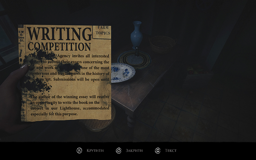 Es ist erwähnenswert, dass wir uns zweimal im Leuchtturm befinden werden. Das erste Mal zu Beginn des Spiels, als die Heldin noch keine Ahnung hat, was sie erwartet, und das zweite Mal, 10 Jahre später, um Rache zu nehmen. Das erste Mal kam die Schriftstellerin an einen so abgelegenen Ort, weil sie einen Schreibwettbewerb gewonnen hatte, bei dem sie einen Text schrieb, der die Jury tief beeindruckte. Nun soll sie ein ganzes Buch über diesen Leuchtturm schreiben. Aber die "Scherze" fangen gleich an, denn wir erhalten Anrufe, in denen wir aufgefordert werden, uns mit dem Schreiben zu beeilen, obwohl wir gerade erst angekommen sind, und es fühlt sich an, als würden wir ausspioniert. Später ruft die Heldin ihren Sohn an und sagt, dass alles nicht so lustig ist, wie sie es gerne hätte, aber sie geht trotzdem zu ihrer Schreibmaschine und beginnt zu schreiben. Danach beginnen die Ereignisse des ersten Spiels von Layers of Fear.