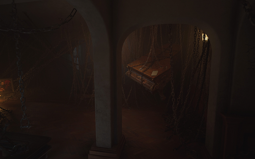 Der DLC ist so atmosphärisch wie möglich, manchmal angespannt und geheimnisvoll, und je nachdem, wie Sie sich entscheiden, werden Sie herausfinden, ob die Musikerin ihr traumatisches Erlebnis überleben konnte. Hervorheben möchte ich auch das Herrenhaus, das dieses Mal mit schweren Ketten bedeckt ist, die den psychischen Zustand der Heldin charakterisieren, und diese Entscheidung verdient ein besonderes Lob für die Spieldesigner.