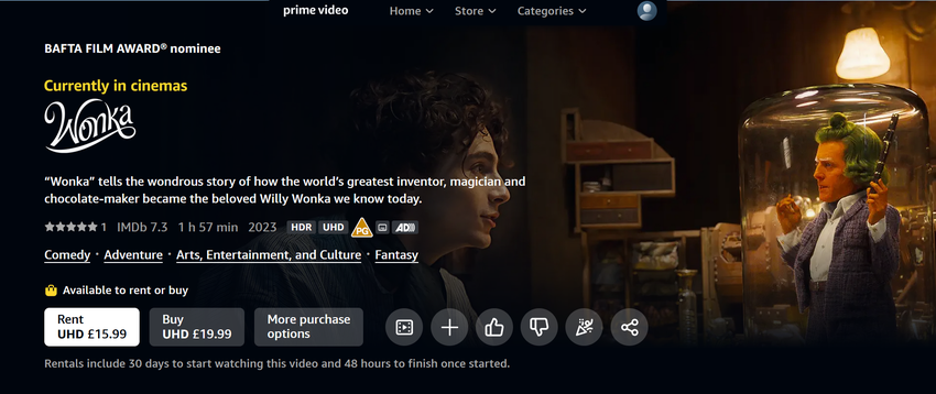Am 22. Januar erfolgte die digitale Veröffentlichung von Wonka. Auf Amazon kann man den Film zum Beispiel für 20 Dollar ausleihen oder für 25 Dollar kaufen.