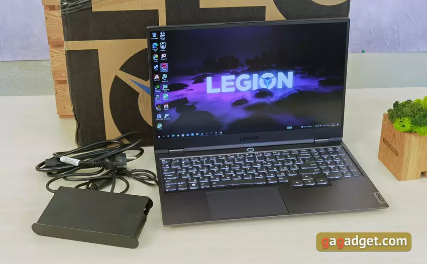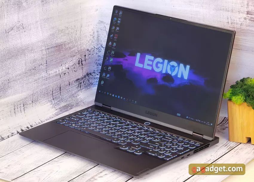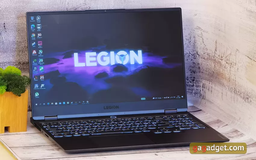 Die aktuellen Konfigurationen des Lenovo Legion Slim 7 nutzen ein Bundle aus AMD-Prozessor und GeForce 3000-Grafikkarte. Die maximale Konfiguration kann einen AMD Ryzen 9 5900HX haben. Wir haben eine Konfiguration mit AMD Ryzen 7 5800H erhalten, die ebenfalls recht leistungsstark ist . Dies ist ein mobiler AMD-Prozessor der Cezanne-Serie, der auf der Zen 3-Architektur basiert. Er wird mit der 7-nm-FinFET-Prozesstechnologie hergestellt. Er umfasst 8 Kerne und unterstützt 16 Verarbeitungsthreads. Er hat eine Basistaktrate von 3,2 GHz und eine maximale Taktrate von 4,4 GHz. Der Level-3-Cache-Speicher beträgt 16 MB und der TDP-Wert liegt bei 45 W (35-54 W). Die RAM-Kapazität beträgt 16 GB DDR4 mit 3200 MHz, die im Dual-Channel-Modus laufen. Es werden maximal 32 GB unterstützt. Die Grafikkarte Option ist nur eine: es ist NVIDIA GeForce RTX 3060 Laptop mit 6 GB GDDDR6 Speicher. Natürlich hat die Laptop-Version eine niedrigere TDP und niedrigere Betriebsfrequenzen. Die Grundfrequenz des Chips beträgt 817 MHz und wird auf bis zu 1282 MHz angehoben. Außerdem: WiFi 802.11 ax und Bluetooth 5.1.