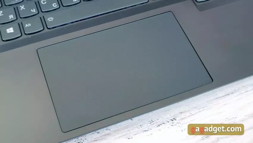 Das Touchpad des Laptops hat eine ordentliche Größe und eine sehr gute Reichweite und Empfindlichkeit. Ja, natürlich, für Spiele ist eine Maus ein Muss. Aber auch alle anderen Manipulationen sind mit dem Touchpad absolut komfortabel zu erledigen.