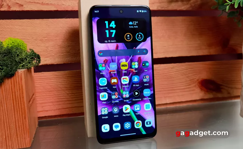 Wie alle anderen Smartphones des Unternehmens läuft auch das Motorola Moto G54 Power Edition auf einem fast reinen Android 13, und wir haben in früheren Testberichten bereits mehrfach über die Benutzeroberfläche gesprochen. Alles ist ziemlich vertraut: viele Personalisierungsoptionen (Hintergrundbilder, Farbschemata, Schriftarten), Desktops mit Gittereinstellungen, Widgets, ein separates Menü mit allen Anwendungen, ein Vorhang mit großen Schaltern, Gesten- oder Tastennavigation.