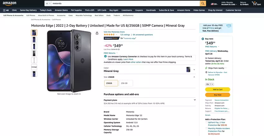 Motorola Edge (2022) auf Amazon: Smartphone mit 144Hz OLED-Bildschirm und MediaTek Dimensity 1050-Chip mit $250 Rabatt