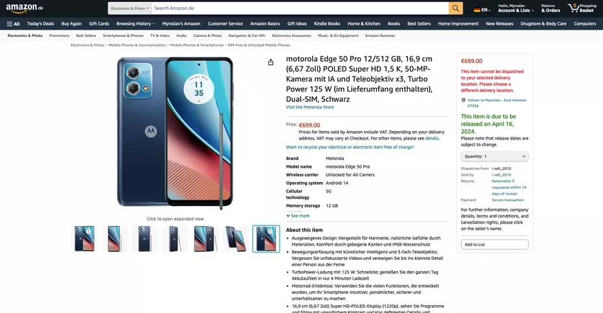 Im Vorfeld der europäischen Ankündigung des Motorola Edge 50 Pro ist das neue Produkt auf dem deutschen Amazon aufgetaucht.