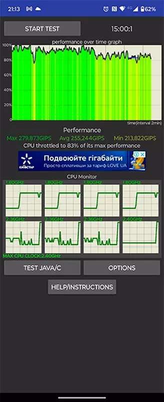 Die Verwendung eines weniger leistungsstarken Prozessors hat allerdings auch ihre Vorteile. Normalerweise überhitzen faltbare Smartphones sehr stark. Das Motorola Razr 40 ist ein wenig besser: Der Leistungsabfall bei längerer maximaler Belastung kann bis zu 83 % betragen, was für diesen Formfaktor gut ist. Der Bereich in der Nähe des externen Displays wird warm.