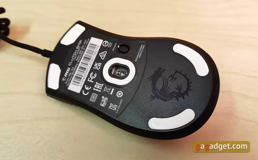 Der Hauptunterschied zwischen der MSI Clutch GM31 Lightweight und der Wireless ist der Sensor. Anstelle des stromsparenden PixArt PAW3311 haben wir den nicht mehr neuesten, aber sehr hochwertigen optischen PixArt PMW3360 eingebaut, den wir schon oft in Top-Modellen gesehen haben. Er hat eine Auflösung von 12.000 DPI und kann Bewegungen mit einer Geschwindigkeit von mehr als 250 Zoll pro Sekunde und einer Beschleunigung von bis zu 50g verfolgen. Die maximale Abfragefrequenz beträgt 1000 Hz. Dieser Sensor ist vielen Spielern bekannt und funktioniert immer perfekt. Im Fall der MSI Clutch GM31 Lightweight gab es keine Überraschungen: keine Abstürze, Cursor-Zittern oder andere Probleme.