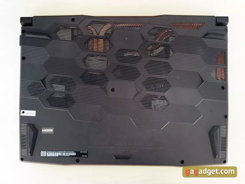 Die MSI Katana GF66 Notebooks verwenden die aktuellen Intel Prozessoren der 11. Generation. Unsere Version hat einen Intel Core i5-11400H. Dies ist ein Tiger-Lake-Prozessor mit sechs Kernen, der auf der Willow-Cove-Architektur basiert. Unterstützt 12 Hyper Threading und wird im 10-nm-SuperFin-Verfahren hergestellt. Die Basistaktrate beträgt 2,7 GHz, die maximale Frequenz bis zu 4,5 GHz, der Third-Level-Cache 12 MB und die TDP 45 W. Für anspruchslose Aufgaben gibt es einen integrierten UHD-Intel-Grafikbeschleuniger mit einer Basisfrequenz von 350 MHz und maximal 1,45 GHz. Als diskrete Grafik ist eine NVIDIA GeForce RTX 3050 Ti Laptop mit einer Basisfrequenz von 1222 MHz und einem Boost auf bis zu 1485 MHz verbaut. Die Größe des Videospeichers beträgt 4 GB GDDR6. Der Videoadapter unterstützt natürlich Echtzeit-Raytracing und Resizable BAR (direkter CPU-Zugriff auf den gesamten Videospeicher über PCI Express) in einem fortschrittlichen MSI-Design. Der Arbeitsspeicher in unserer Konfiguration beträgt 16 GB DDR4-3200, es arbeitet im Dual-Channel-Modus. Der Speicher ist nicht auf die Platine gelötet, der Laptop hat zwei RAM-Slots, die haben zwei 8-GB-Sticks. So kann man ihn im Laufe der Zeit beispielsweise durch zwei 16-GB-Sticks ersetzen.