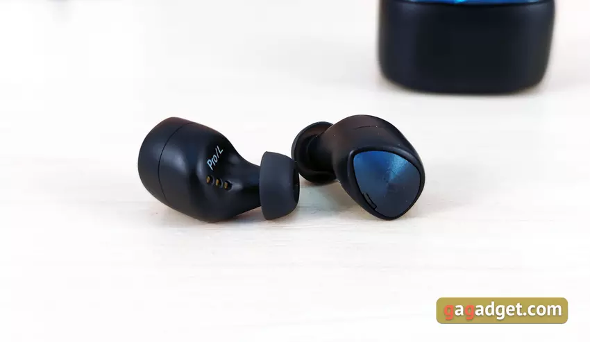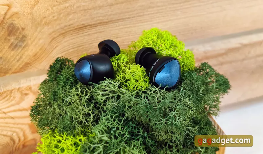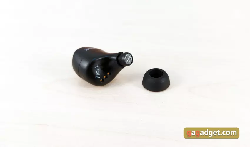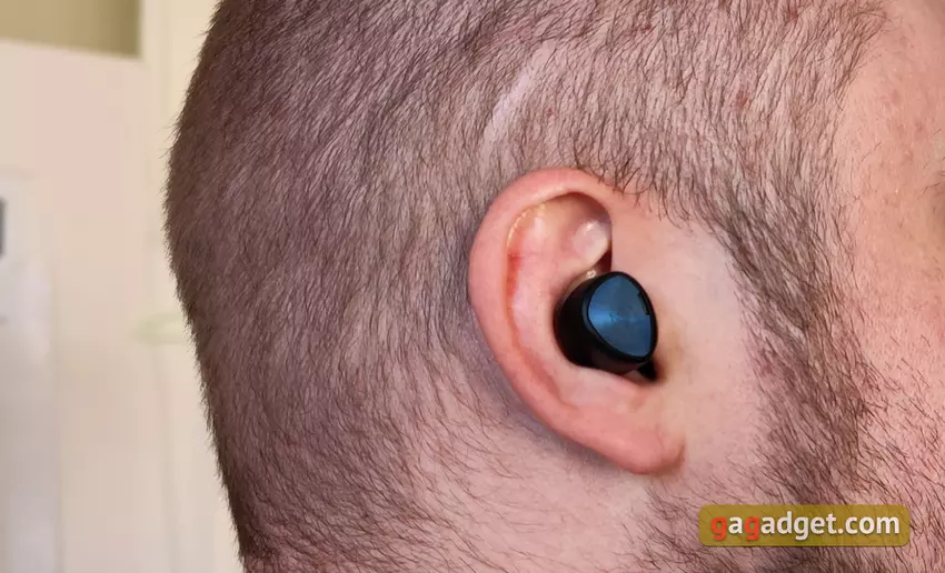 Die Kopfhörer sind leicht und haben eine sehr gute Form. Sie sitzen sehr tief im Gehörgang, sind gut fixiert und streben auch beim Laufen nicht danach, aus den Ohren zu fliegen. Allerdings musste ich anfangs ein wenig experimentieren, um die für mich optimale Position mit besserer Schalldämmung zu finden. Übrigens ist die passive Schalldämmung bei der Wahl der richtigen Polster und des richtigen Sitzes hervorragend. Aber für diejenigen, die sich nicht von der Außenwelt isolieren wollen, gibt es einen Hear-Through-Transparenzmodus. Der Benutzer hört den Ton von Mikrofonen, um zu hören, was um ihn herum passiert. Der einzige wichtige Punkt, den man über die Benutzerfreundlichkeit wissen sollte, ist, dass die Ohrstöpsel ziemlich weit über die Ohren hinausragen. Es besteht die Möglichkeit, dass es im Winter nicht sehr bequem ist, eine Mütze zu tragen.