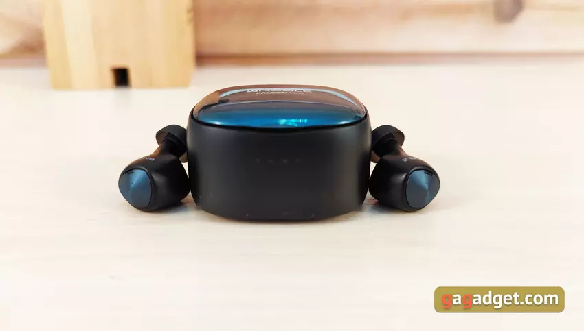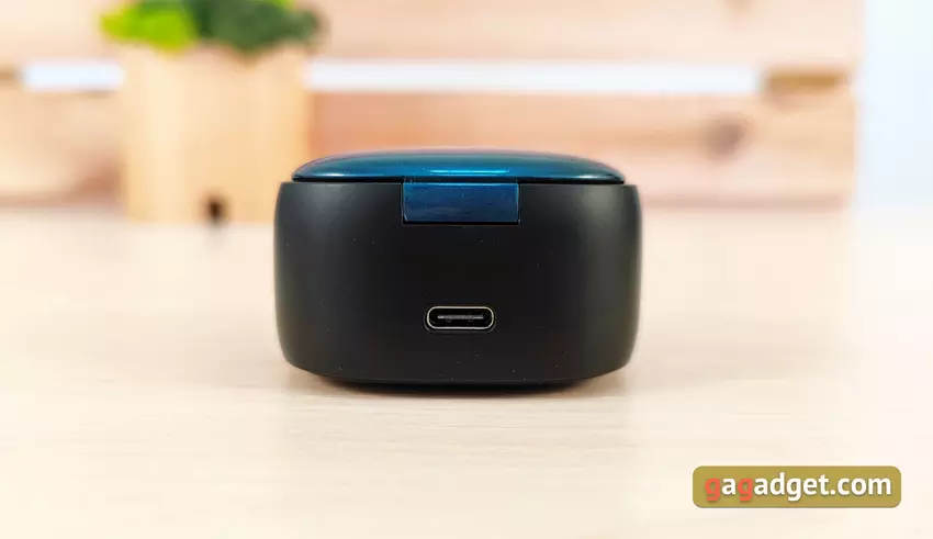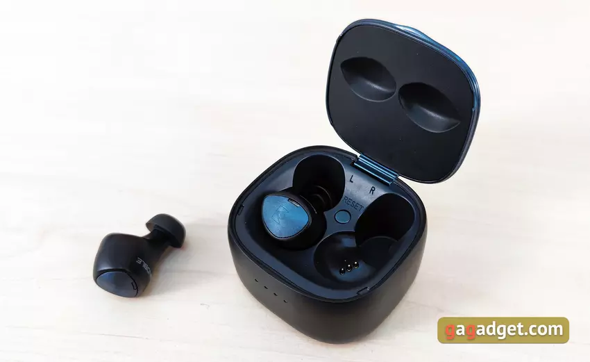 Der Deckel hat eine Autoklappe beim Schließen und hält in diesem Zustand gut. Im Inneren des Cases ist alles fast wie gewohnt: Es gibt Plätze für die Kopfhörer mit Kontakten zum Laden und Magneten zum Einziehen in die richtige Position. Wie die Praxis gezeigt hat, ist das Design nicht das praktischste: Es ist nicht so einfach, die Kopfhörer aus dem Etui zu nehmen. Zwischen den Kopfhörern befindet sich eine Reset-Taste zum Zurücksetzen auf die Werkseinstellungen.