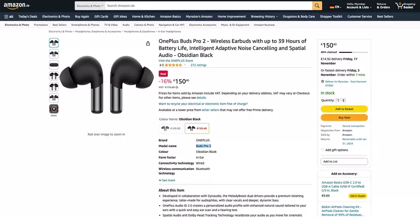 AirPods Pro 2 Konkurrent: die OnePlus Buds Pro 2 können auf Amazon mit einem Rabatt von 29 Euro gekauft werden