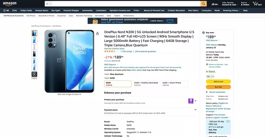 $50 Rabatt: OnePlus Nord N200 mit 5G, 90Hz Bildschirm und Snapdragon 480 Chip für $189 auf Amazon Verkauf