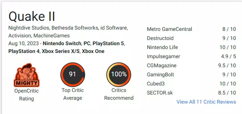 Die aktualisierte Version von Quake 2, an der das berühmte Studio Nightdive (Autor des Remakes von System Shock) gearbeitet hat, wurde von Spielern und Kritikern begeistert aufgenommen und erhielt auf allen Plattformen hervorragende Noten.
