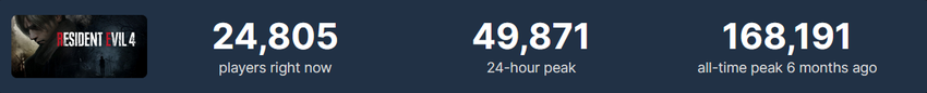 Laut SteamDB erreichte die Online-Spitze des Resident Evil 4-Remakes am 21. September 50 Tausend Spieler. Während des gesamten Septembers lag die Online-Spitze bei etwa 5 Tausend Spielern. Zum Zeitpunkt des Schreibens, RE 4 online ist 25 Tausend. Angesichts der Tatsache, dass die Erweiterung dauert nur 4 Stunden zu vervollständigen und die Steam-Rabatt gilt nur bis zum 25. September, in der Mitte Oktober die Online wird wieder auf die "alten" Zahlen, aber es ist immer schön zu sehen, wie die Veröffentlichung von interessanten Inhalten zieht die Aufmerksamkeit der Spieler.