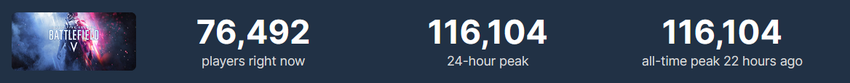 Laut SteamDB spielten am 27. November 116 Tausend Spieler gleichzeitig Battlefield V, was einen absoluten Rekord darstellt. Im Oktober aktualisierte Battlefield 2042 seine Online-Spitze auf 107 Tausend Spieler, so dass BF V den letzten Teil der Serie überholte. Außerdem liegt Battlefield V derzeit auf Platz 9 der beliebtesten Spiele auf Steam.