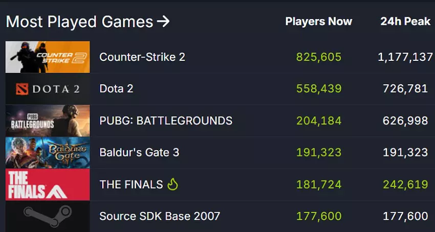 Zum Zeitpunkt des Schreibens, The Finals nimmt den fünften Platz durch die Zahl der Nutzer in das Spiel. Natürlich ist der neue Shooter weit von den Indikatoren solcher Giganten der Online-Spiele wie Counter-Strike 2 und Dota 2 entfernt, aber er hat alle Chancen, PUBG in naher Zukunft zu überholen.