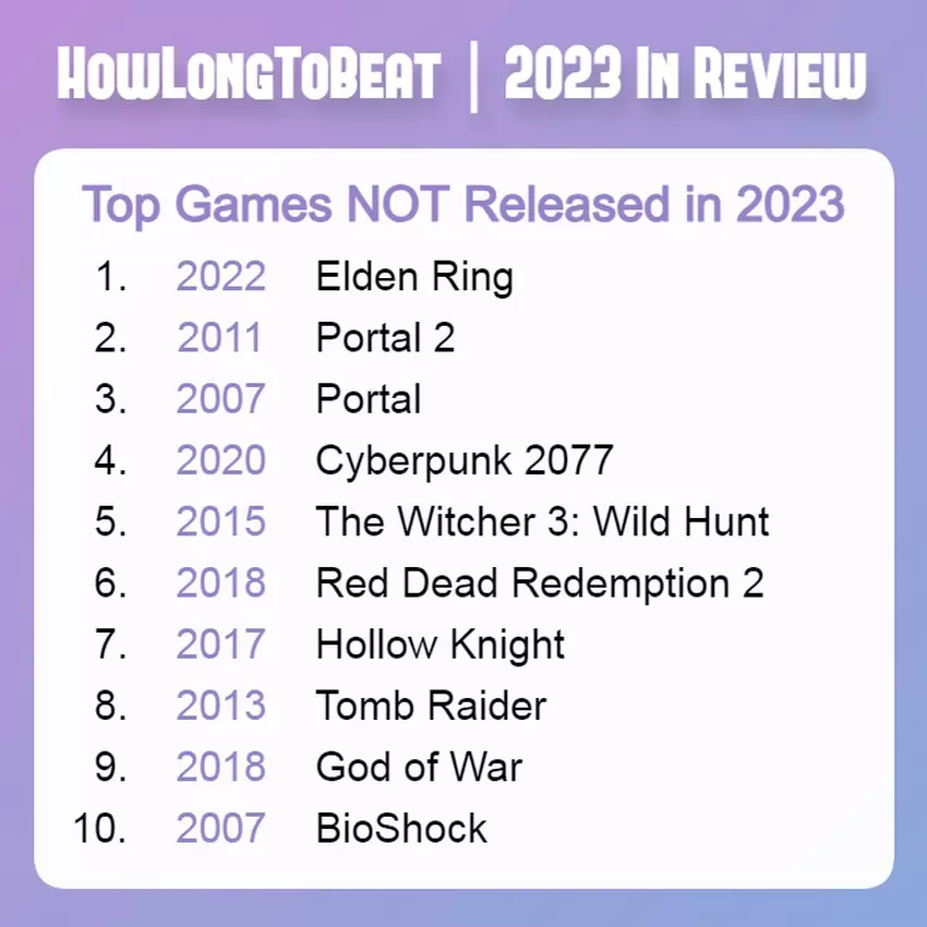 HowLongToBeat: Elden Ring und die beiden Portal-Fortsetzungen waren die beliebtesten Spiele des Jahres 2023, unter den Projekten, die zu Beginn des Jahres erschienen sind