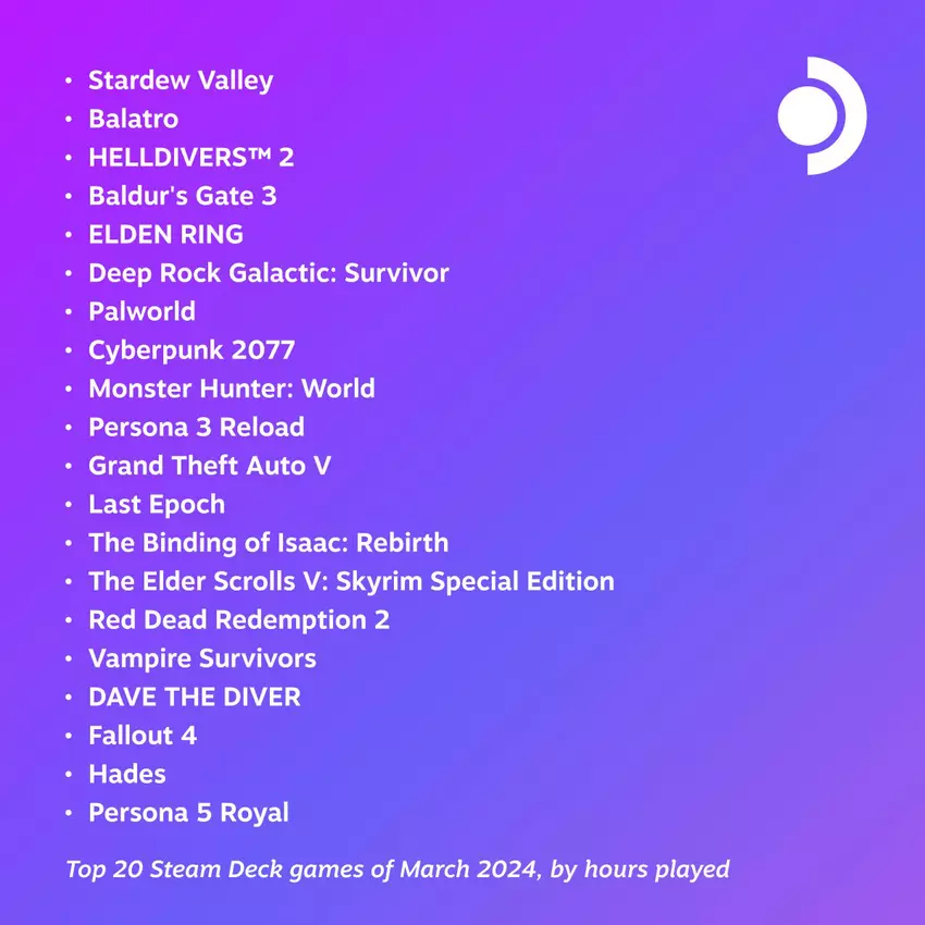 Die 20 beliebtesten Spiele auf Steam Deck im März: Stardew Valley, Balatro und Helldivers 2 sind die Spitzenreiter