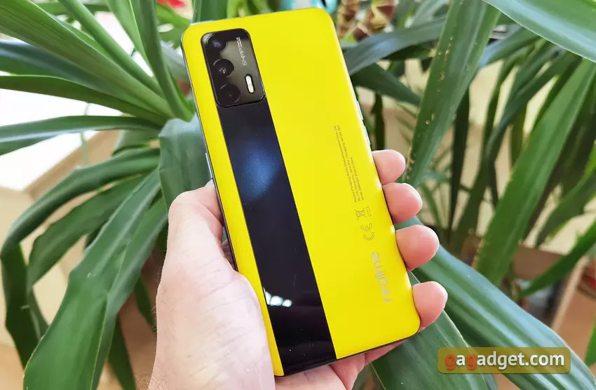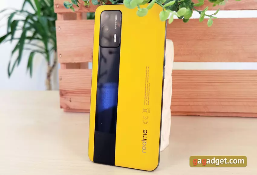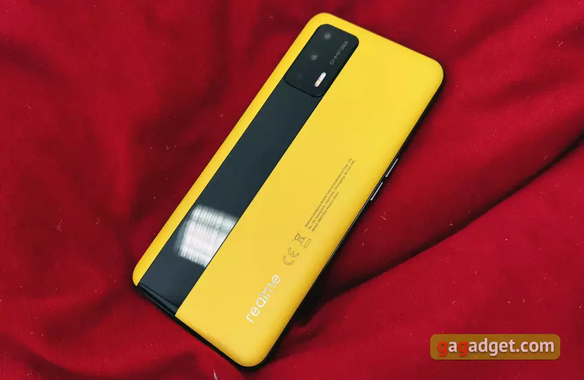 Das Unternehmen hat es geschafft, zu überraschen und der realme GT in Gelb sieht wirklich originell und interessant aus. Bei der Montage gibt es überhaupt keine Probleme: alles passt gut. Allerdings bräuchten Sie einen Metallrahmen, um glücklich zu sein.