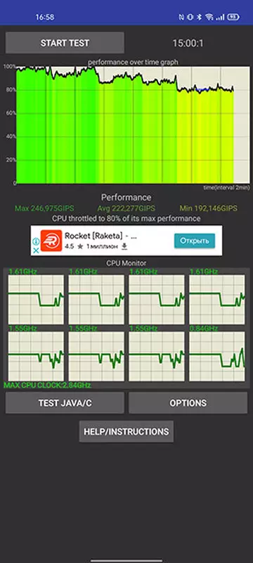 Der Qualcomm Snapdragon 888 ist ein ziemlich heißer Prozessor, der in den meisten Smartphones, die wir kennen, zu Überhitzung neigt. realme behauptet, dass der GT ein spezielles Stahlkühlsystem verwendet. Ein Stresstest hat gezeigt, dass die Leistung um bis zu 80 % sinken kann. Das ist nicht kritisch, aber die Tatsache ist da. Auf der anderen Seite bleibt das Smartphone selbst warm und wird nicht unangenehm heiß.
