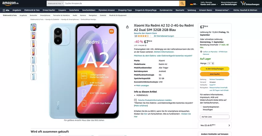 Das Gerät wird jetzt auf Amazon für nur 102,42 €. Die Neuheit ist nur in der Variante 2/32 GB und in der Farbe Blau erhältlich.