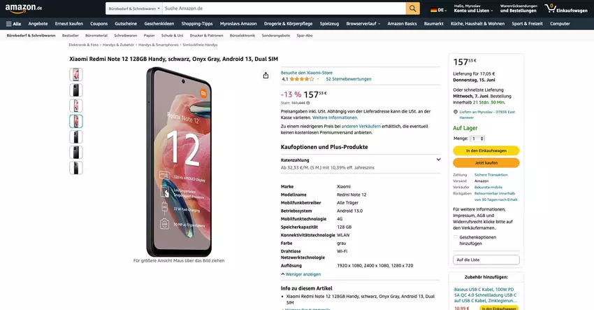 Redmi Note 12 4G bei Amazon: AMOLED-Bildschirm mit 120 Hz, Snapdragon 685-Chip und 50-MP-Kamera für weniger als 180 Euro