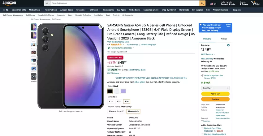 Nicht nur Galaxy Buds 2: Samsung Galaxy A54 5G ist auch bei Amazon zum Aktionspreis erhältlich