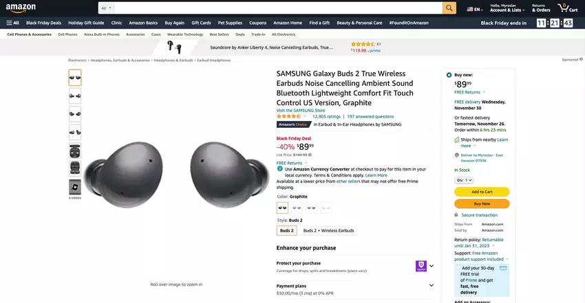 Samsung verkauft die TWS Galaxy Buds2 auf Black Friday Verkauf mit einem Promo-Preis - $129.99 $149.99, -13%99 $129.99 $149.99, -13%.
