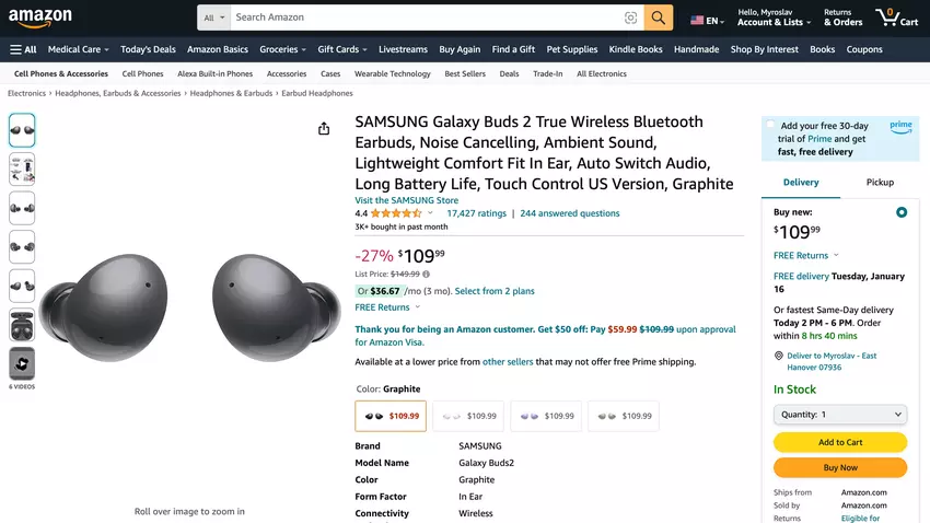 Samsung Galaxy Buds 2 kann auf Amazon für $109 ($40 Rabatt) erworben werden.