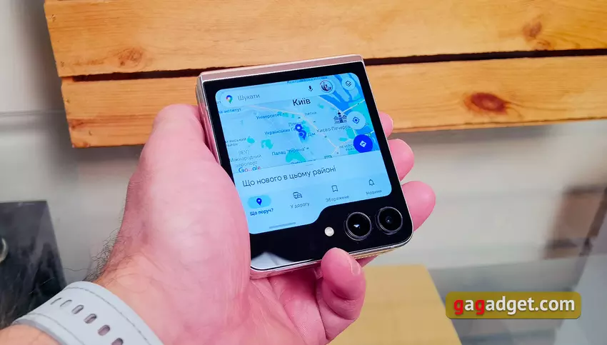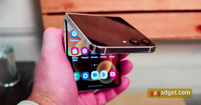 Im zusammengeklappten Zustand passt das Smartphone dank seiner kompakten Größe in fast jede Tasche. Allerdings ist das Aufklappen des Samsung Galaxy Flip5, wie bei jedem anderen modernen Klapp-Smartphone mit flexiblem Display, nicht sehr komfortabel. Es ist äußerst schwierig, dies mit einer Hand zu tun, ohne zu riskieren, das interne Display zu beschädigen. Aber dank des vergrößerten Außendisplays ist es jetzt recht bequem, unterwegs einige Aktionen durchzuführen, ohne das Smartphone öffnen zu müssen.