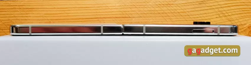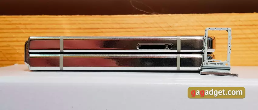 Im ausgeklappten Zustand ist das Smartphone mit nur 6,9 mm sehr dünn. Auf der linken Seite befindet sich ein Fach.
