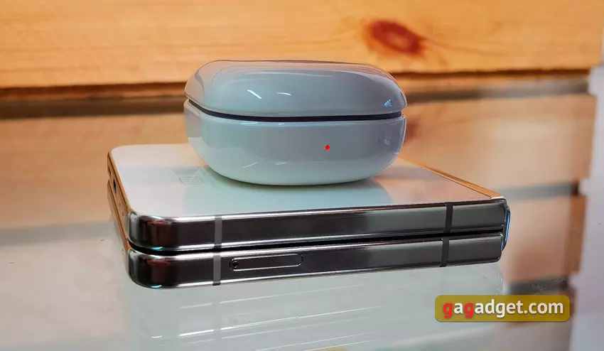 Das Samsung Galaxy Flip5 ist wie das Galaxy Flip4 mit einem 3700 mAh-Akku ausgestattet. Auch die Akkulaufzeit ist auf dem gleichen Niveau geblieben. Bei moderater Nutzung kann man mit einem Tag Arbeit rechnen. Bei mir sind das etwa 15-20 Minuten Anrufe, Mails, Browser, Instant Messenger, soziale Netzwerke, YouTube, etwa anderthalb Stunden Musik über Bluetooth und ein wenig Kameranutzung. Wenn Sie mit Ihrem Smartphone Spiele spielen, müssen Sie es natürlich viel öfter aufladen. Auch die Ladeleistung hat sich nicht geändert: 25 W kabelgebunden (50 % in einer halben Stunde wird versprochen), 15 W kabelloses Laden und 4,5 W kabelloses Rückwärtsladen. Das Aufladen eines anderen Smartphones ist nicht sehr praktisch, aber das Aufladen von Kopfhörern schon.