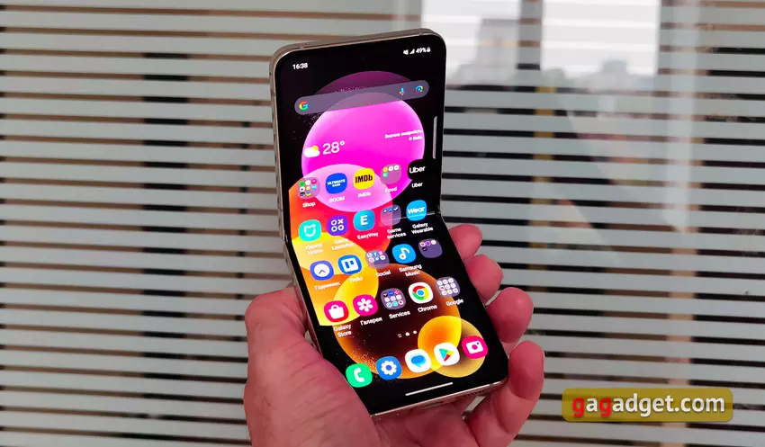 Das Smartphone läuft unter Android 13 mit der proprietären One UI 5.1.1-Oberfläche. Sie ist uns bereits von der Galaxy S23-Reihe bekannt, abgesehen von einigen zusätzlichen Funktionen für flexible und externe Displays, die wir bereits oben erwähnt haben. Im Allgemeinen hat Samsungs One UI-Oberfläche in den letzten Jahren mit ihrer Geschwindigkeit, Bequemlichkeit und Stabilität sehr gut gefallen. Das gilt auch für die neuesten faltbaren Smartphones des Unternehmens. Optisch unterscheidet sich die Oberfläche deutlich von reinem Android. Das gilt aber ausschließlich für die Kosmetik. Die ganze Logik der Arbeit ist vertraut. Es gibt Desktops mit Widgets und Anwendungen und Gittereinstellungen, einen Vorhang mit Schaltern und ein separates Menü mit allen Anwendungen, die deaktiviert werden können. Es gibt auch einen einfachen Modus mit großen Symbolen.