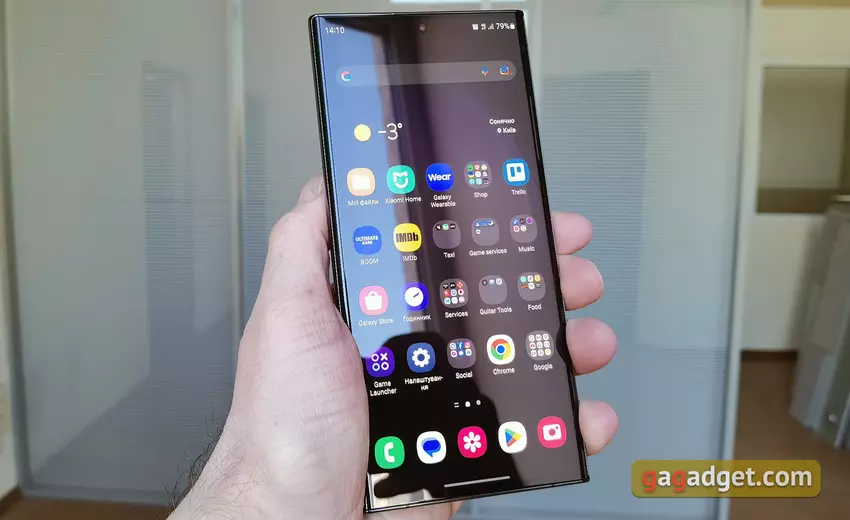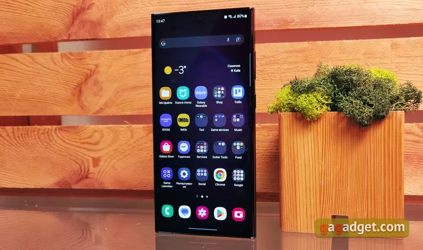 Das Samsung Galaxy S23 Ultra ist seinem Vorgänger aus dem letzten Jahr in Design und Aufbau sehr ähnlich. Und auf den ersten Blick wird es schwierig sein, sie zu unterscheiden. Trotzdem sind einige Details anders. Die Form des Smartphones erinnert an die inzwischen eingestellte Note-Reihe, die sich immer durch scharfe Winkel und gerade Linien auszeichnete. Wie im letzten Jahr hat das Display eine Diagonale von 6,8 Zoll und minimale Ränder am Rand. Aber beim Samsung Galaxy S23 Ultra hat sich das Unternehmen entschieden, es fast flach zu machen. Ja, es gibt Abrundungen an den Seiten, aber sie sind minimal. Gegner von gebogenen Bildschirmen werden sich also freuen. Die Frontkamera ist wie bisher in Form eines kleinen Lochs am oberen Rand des Bildschirms angebracht. Bei der Verwendung von Hintergrundbildern mit dunkler Oberfläche ist sie fast unsichtbar. All dies wird durch eine Gorilla-Victus-Glasscheibe der zweiten Generation geschützt, ebenso wie die Rückabdeckung. Laut Corning ist das neue Gorilla Glass Victus 2 kratzfester und hat in Labortests Stürze aus einer Höhe von bis zu einem Meter auf betonähnliche Oberflächen überstanden.