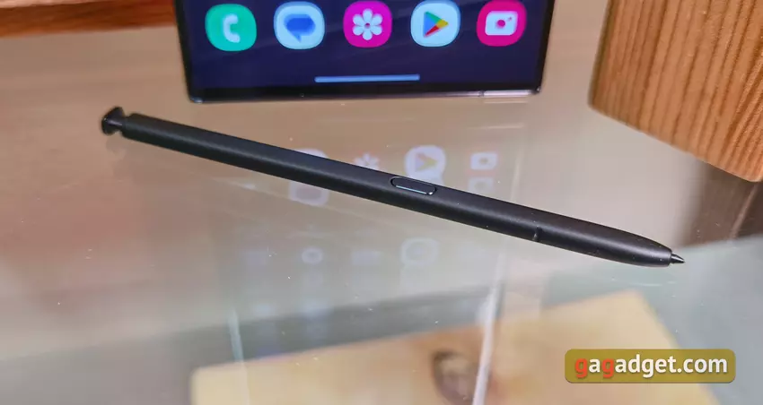 Der S Pen ist ebenfalls schwarz und hat eine matte Oberfläche. Es gibt keine strukturellen Unterschiede zum Vorgängermodell. Es hat eine einzige physische Taste auf dem Gehäuse.