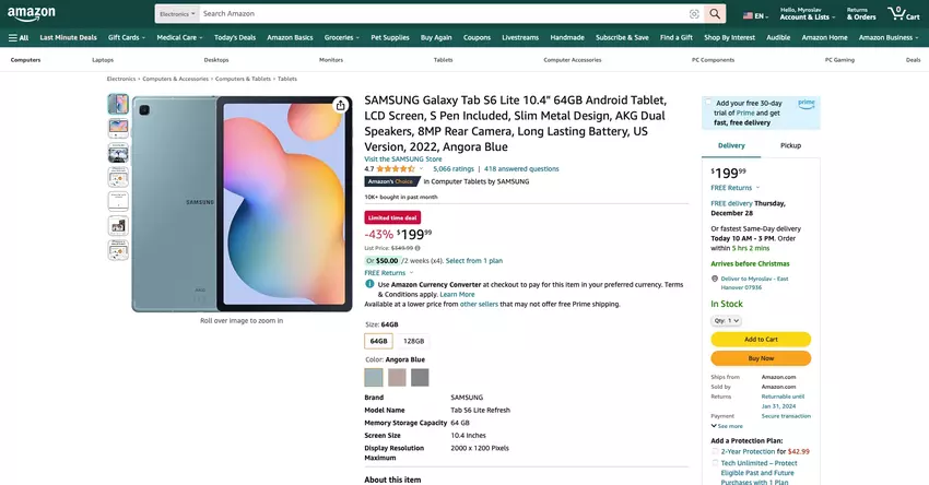 Tolles Angebot!!! Samsung Galaxy Tab S6 Lite ist auf Amazon mit einem Rabatt von bis zu $210 erhältlich
