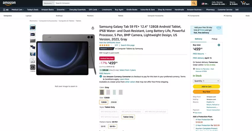 - Samsung Galaxy Tab S9 FE+, 128GB - $559.99 $599.99, -7%.