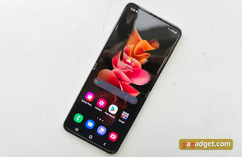Ansonsten gibt es keine ernsthaften Funktionen bei der Verwendung. Wenn das Samsung Galaxy Z Flip3 vollständig geöffnet ist, verwandelt es sich in ein vertrautes Smartphone.