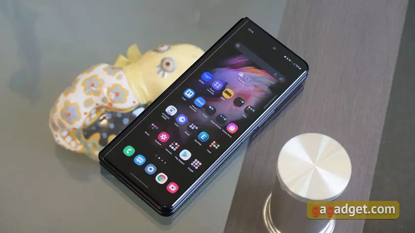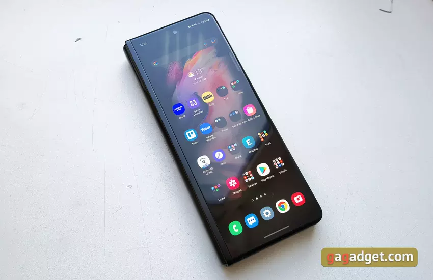 Auf dem Samsung Galaxy Z Fold3 läuft die Android-Version 11 mit der One UI 3.1.1-Oberfläche. Im Grunde ist alles von den bisherigen Samsung-Smartphones bekannt. Mit einigen Ergänzungen, die angesichts des fast tabletähnlichen internen Bildschirms und des Vorhandenseins eines zweiten externen Bildschirms notwendig sind. Es gibt Optionen mit Desktops und separaten App-Menüs, Gesten- und Tastennavigation, Rasteranpassungen, verschiedene Designthemen und so weiter. Von den Funktionen ist es erwähnenswert, dass der interne Bildschirm alle nativen Apps in einer "Tablet"-Version in zwei Spalten anzeigt, was ziemlich praktisch ist. Es ist möglich, für jeden Bildschirm separate Desktops einzurichten oder sie zu duplizieren. Es gibt eine Option, mit der die Arbeit mit einer geöffneten Anwendung fortgesetzt werden kann, wenn zwischen Bildschirmen gewechselt wird. Es funktioniert jedoch nicht mit allen Anwendungen von Drittanbietern. In den Einstellungen gibt es einen separaten Punkt Labs mit "experimentellen" Funktionen. Zum Beispiel erzwungenes Windowing für Anwendungen, die es nicht unterstützen, Anpassung des Seitenverhältnisses usw.