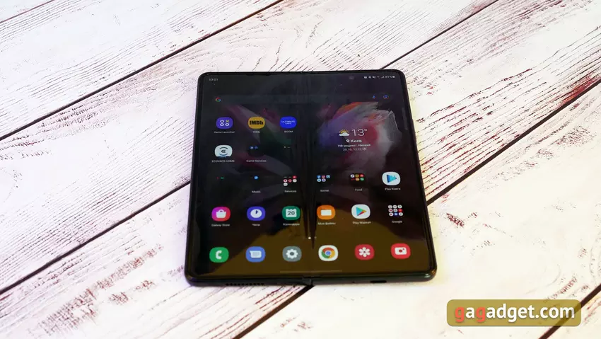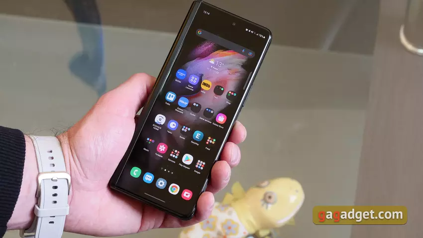 Der interne Bildschirm eignet sich dank seiner Größe hervorragend zum Surfen im Internet, für E-Mails, Dokumente und den Mehrfenstermodus. Gleichzeitig können dank der Optimierung einiger Anwendungen Inhalte durch einfaches Ziehen und Ablegen zwischen Fenstern übertragen werden. Aber wenn das Smartphone aufgeklappt ist, wird es groß und ist schwer mit einer Hand zu bedienen, und es ist nicht sicher. Vor allem in Bewegung. Andererseits ist es schwierig, sich Szenarien vorzustellen, in denen dies notwendig wäre.