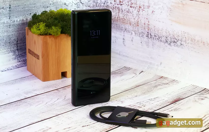Das Smartphone verfügt über einen 4400-mAh-Akku. Um genau zu sein, gibt es zwei: 2280 mAh und 2120 mAh. Samsung lässt sich mit dem Schnellladen Zeit: Das Smartphone unterstützt 25 W über Kabel und 11 W ohne Kabel. Wir hatten kein eigenes Ladegerät, so dass wir keine Möglichkeit hatten, die Ladezeiten zu messen. Was die Akkulaufzeit betrifft, so liegt sie im Rahmen des Möglichen, mehr aber auch nicht. Aber das hängt alles sehr stark von den Nutzungsszenarien ab. Wenn man die meiste Zeit den externen Bildschirm nutzt und abends für eine halbe Stunde auf den internen Bildschirm wechselt, um zu spielen und im Browser zu surfen, hält das Smartphone einen Tag lang durch. Wenn der interne Bildschirm regelmäßig genutzt wird, hält das Smartphone kaum bis zum Abend durch. Einer der Pluspunkte ist die kabellose 4,5-Watt-Rückwärtsladefunktion, mit der man Kopfhörer oder eine Smartwatch aufladen kann.