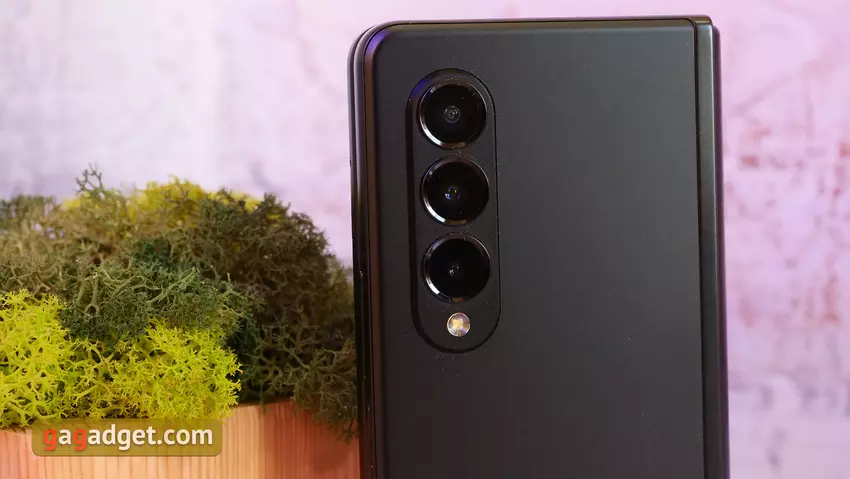 Die Kamera auf der Rückseite ist im Vergleich zum Vorgängermodell in ihren Eigenschaften unverändert geblieben. Es gibt drei von ihnen. Die 12-Megapixel-Hauptkamera mit 1/1,76-Zoll-Sensor, 1,8-µm-Pixelgröße, f/1,8-Blende, 26 EFR, optischer Stabilisierung und Dual Pixel PDAF-Phasenautofokus. Die Ultra-Weitwinkel-Kamera hat eine ähnliche Auflösung von 12 MP, eine f/2.2-Blende, einen Blickwinkel von 123° und keinen Autofokus. Das dritte Telephotomodul: 12 MP, f/2.4, 52 mm EFR, 1/3.6", 1.0µm, optische Stabilisierung und Phasenautofokus. Bietet einen 2-fachen optischen Zoom. Die externe Frontkamera ist 10MP, f/2.2 Auflösung und hat Autofokus. Der interne Sub-Screen ist 4 MP, f/.1.8, 2.0µm.