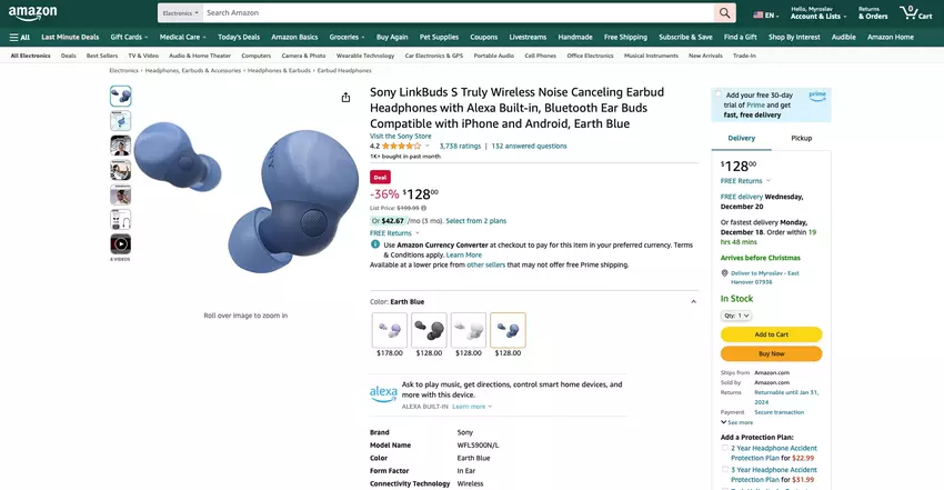 Sony LinkBuds S auf Amazon: TWS-Kopfhörer mit ANC und bis zu 20 Stunden Akkulaufzeit für $128 ($72 Rabatt)