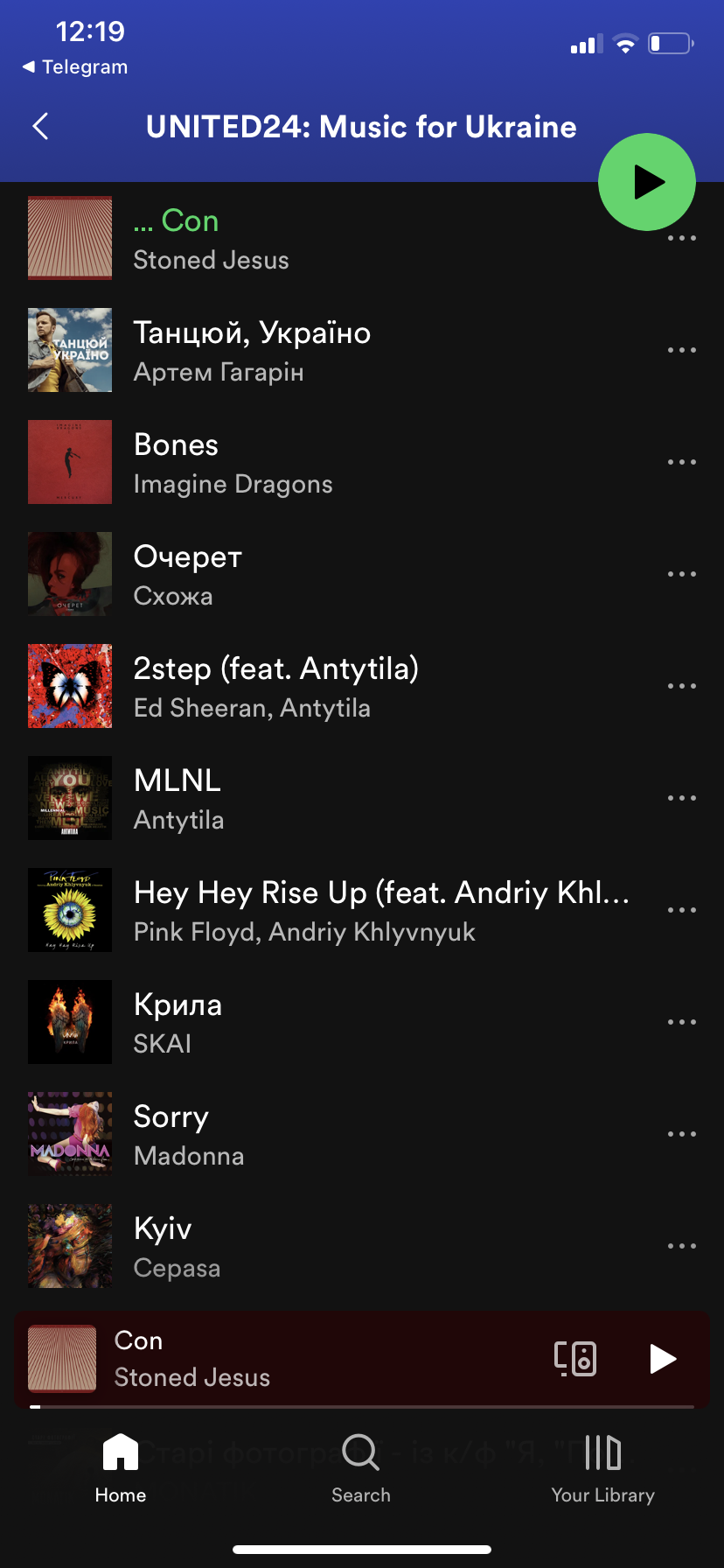 Der Minister für digitale Transformation der Ukraine Mykhailo Fedorov hat es verraten. Spotify hat die Wiedergabeliste UNITED24: Musik für die Ukraine in der gebrandeten Anwendung für den Unabhängigkeitstag erstellt. Darin wurde hochwertige Musik ukrainischer und ausländischer Künstler gesammelt.