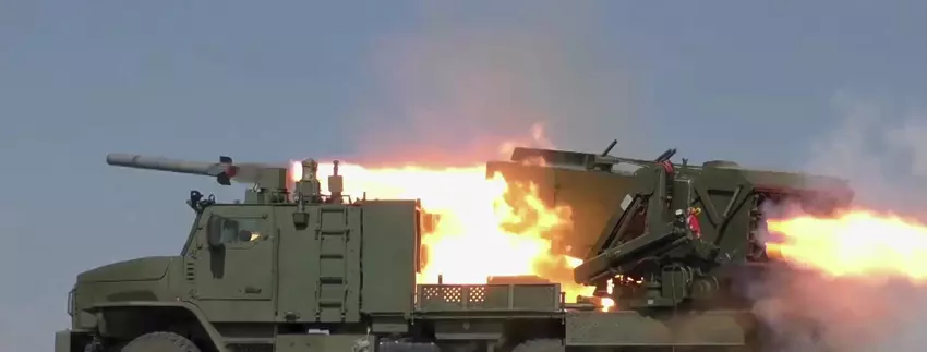 Der TOS-2 Tosochka ist ein schweres Flammenwerfersystem, das vor drei Jahren bei einer Übung erstmals eingesetzt wurde. Es ist der Nachfolger des TOS-1A-Systems und zeichnet sich durch verbesserte technische Parameter aus. Das TOS-2 verwendet Thermobar-Raketen mit einem Kaliber von 220 mm. Die Startreichweite ist nicht angegeben, wurde aber gegenüber dem TOS-1A erhöht (10 Kilometer).