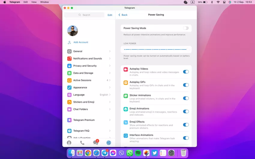 Die wichtigste Neuerung des Programms ist die Funktion Energiesparmodus. Er deaktiviert die automatische Wiedergabe von Videos, Stickereffekten und allen Animationen in der App. Dadurch verbraucht Telegram weniger Strom auf dem Gerät.
