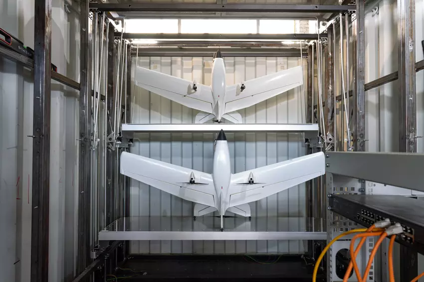 Vom Erhalt des Befehls bis zum Abflug vergehen 3 Minuten. Jeder Container verfügt über eine eigene Wetterstation, die für die Sicherheit der Drohne sorgt: Bei schlechtem Wetter unterbricht das System den Flug und das Fluggerät kehrt in den Container zurück.