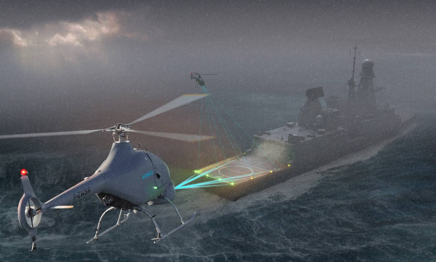 Airbus hat das DeckFinder-System für die Drohne entwickelt. Es ermöglicht das autonome Starten und Bergen von unbemannten Systemen. Die Genauigkeit beträgt nach Angaben des Herstellers 10-20 cm unter schwierigen Umweltbedingungen.