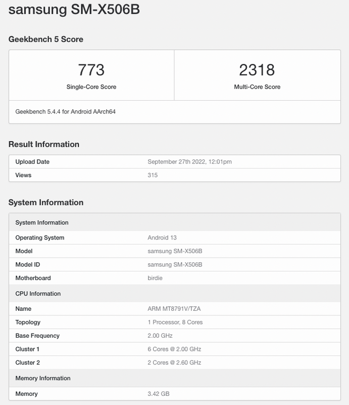 Das Gerät wurde in der Geekbench-Leistungstest-Datenbank gesichtet. Das Tablet läuft unter der Modellnummer SM-X506B. Gleich mehreren Quellen zufolge handelt es sich um das Galaxy Tab S8 FE.