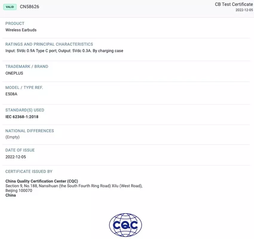 Es handelt sich um die kabellosen Kopfhörer OnePlus Nord Buds 2. Die Neuheit wurde in der Datenbank der chinesischen Zertifizierungsstellen IMDA und CQC gesichtet. Die Kopfhörer tragen die Modellnummer E508A. Das Modell soll ein Vakuum-Design, einen USB-C-Ladeanschluss und Active Noise Cancellation (ANC) erhalten. Die Ohrhörer werden außerdem eine Ladeleistung von 1,5 Watt unterstützen. Das Gehäuse wird mit 4,5 Watt aufgeladen.