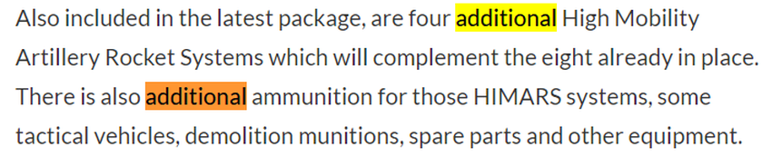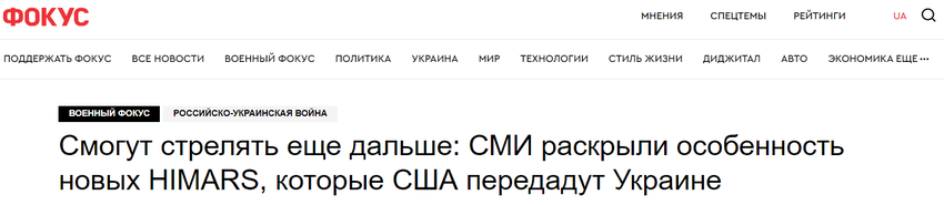 Trukha schreibt, dass die USA der Ukraine HIMARS-Raketen mit einer Reichweite von 300 km liefern. Die Financial Times wird mit den Worten zitiert. Dies wird von einer geringen Anzahl anderer Medien und Quellen berichtet.